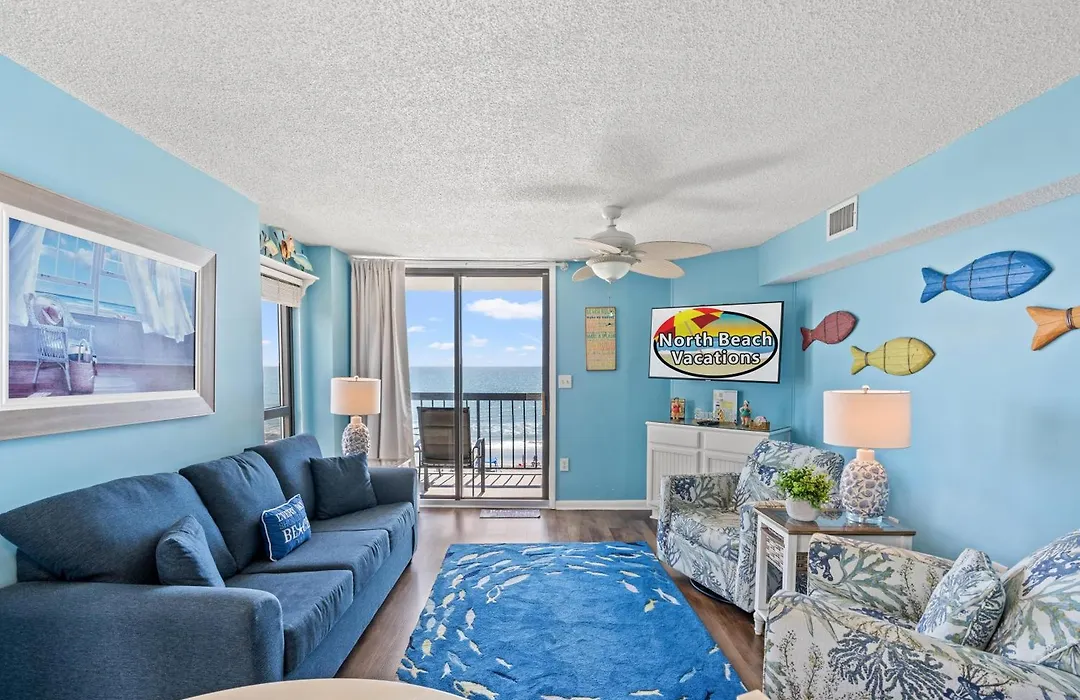 Views of the sea can be enjoyed from the holiday home. This Myrtle Beach property comes with a bathroom with a separate toilet, a shower, and a washing machine. Dryers and towels are also available.